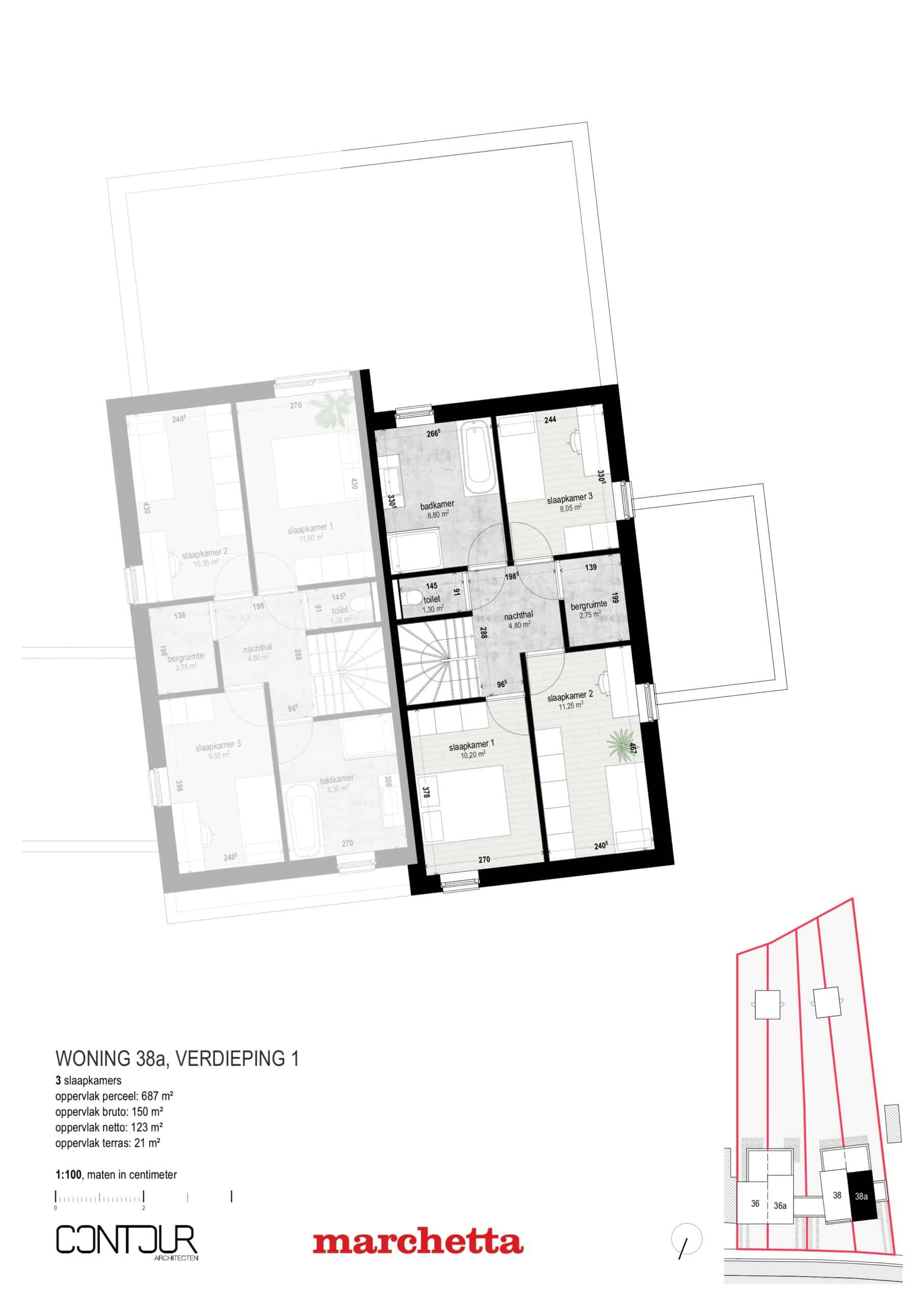 * De bruto oppervlakte van de woningen is de oppervlakte inclusief de buitenmuren en inclusief de binnenmuren.